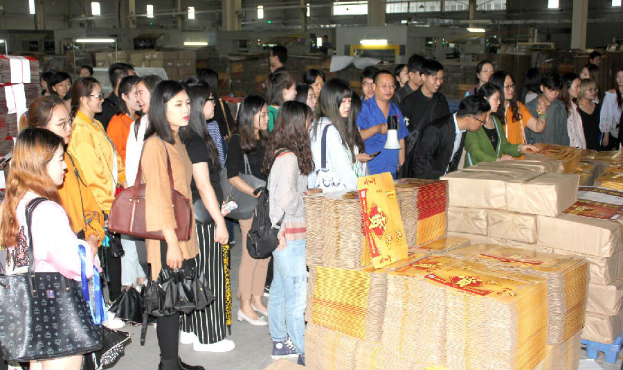 9月26日下午,鄭州大學(xué)美術(shù)學(xué)院藝術(shù)設(shè)計系主任王曉予老師帶領(lǐng)設(shè)計系教師、研究生以及大三大四學(xué)生100余人來到位于河南省創(chuàng)意印刷包裝產(chǎn)業(yè)園的河南瑞之光印刷股份有限公司參觀交流,開展第二課堂學(xué)習(xí)。